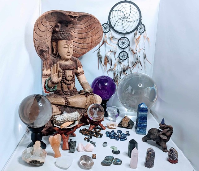 Mystik & Krystaller er en lille butik – kun ca. 2 år gammel, som sælger diverse spirituelle artikler, men med krystallerne som det absolutte største produkt i vores katalog. Men derud over, så sælger vi både tarotkort, røgelse, buddhaer, krystalsmykker, wicca artikler og textiler.